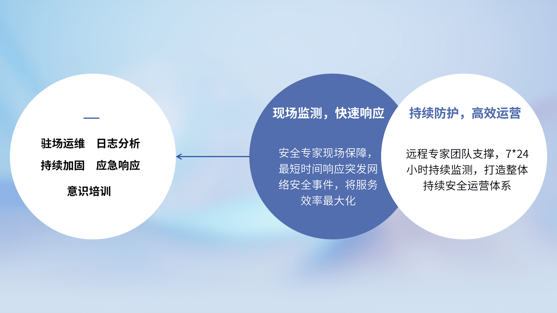 7X24小时持续监测安全事件,保持安全策略有效性,降低资产脆弱性风险,,,,精准拦截黑客攻击,,,减少被黑客利用的机会,,第一时间遏制,,,,降低损失。。。
